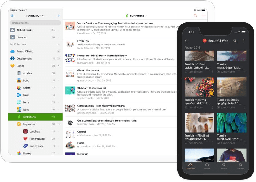 - Meilleure organisation visuelle : grâce à l’usage de collections et l’aperçu des liens par miniatures, Raindrop.io donne une vue d’ensemble claire et esthétique de vos contenus enregistrés.