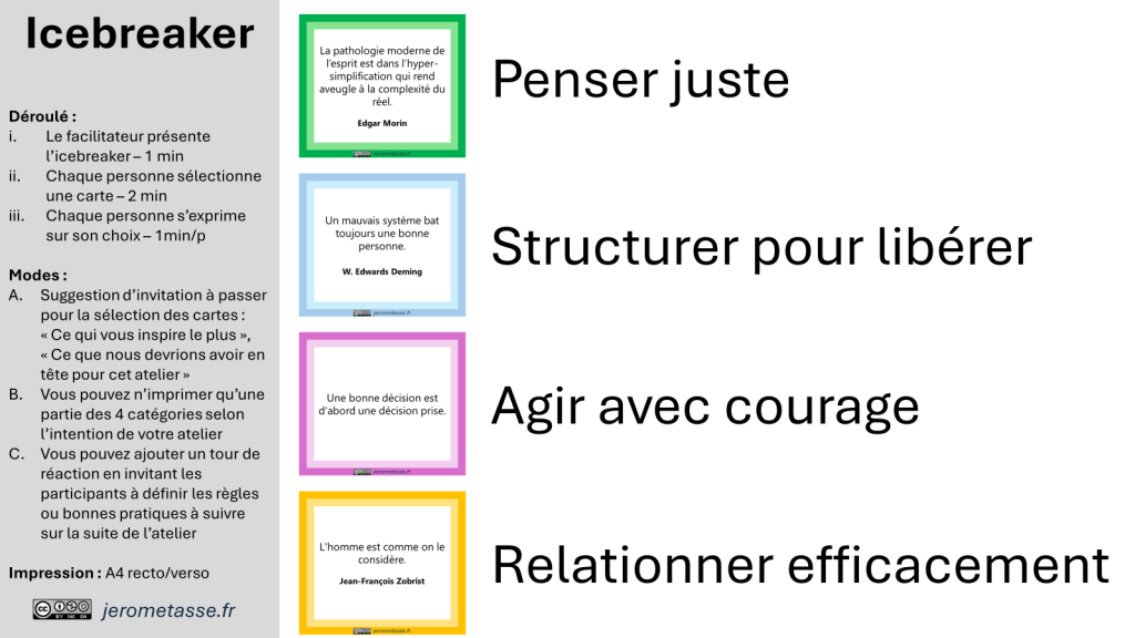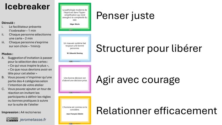 Pour les rendre plus accessibles et vivantes, je les ai également rassemblées sous forme d’un jeu de cartes, à utiliser lors de vos prochains icebreaker :